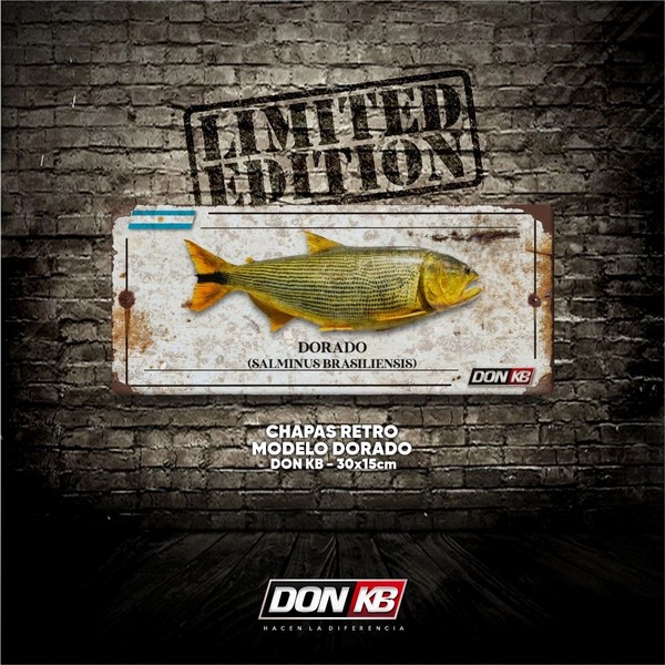 Chapas decorativas con motivo de Dorado y Tararira estilo retro, ideal para decorar habitaciones, sector de pesca y quinchos.