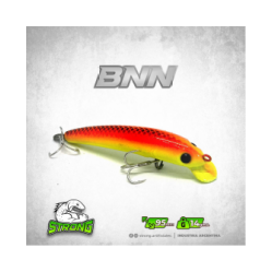 Bananita de 95 mm y 14 grs, baja aproximadamente 30 cm, ideal para la pesca de tarariras y doradillos